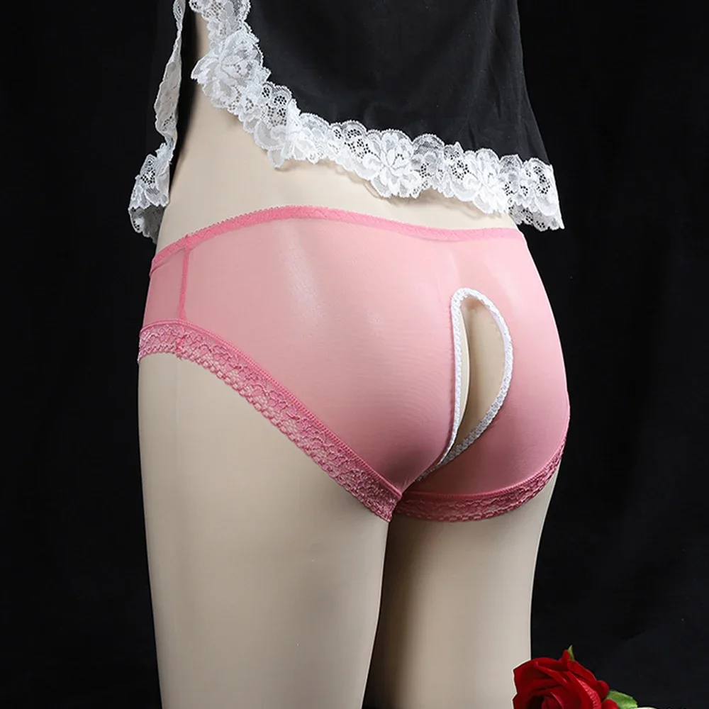 1pc Unixes Crotchless Sexy Panties Men Women Lace Bikini Briefs Underwear See Through Mesh Low Waist Underpants