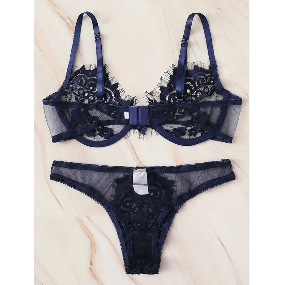 Women New 2Pcs Sexy Lingerie Lace Bra Brief Sets Unlined Bra G-string Ladies Underwear Sleepwear Sets