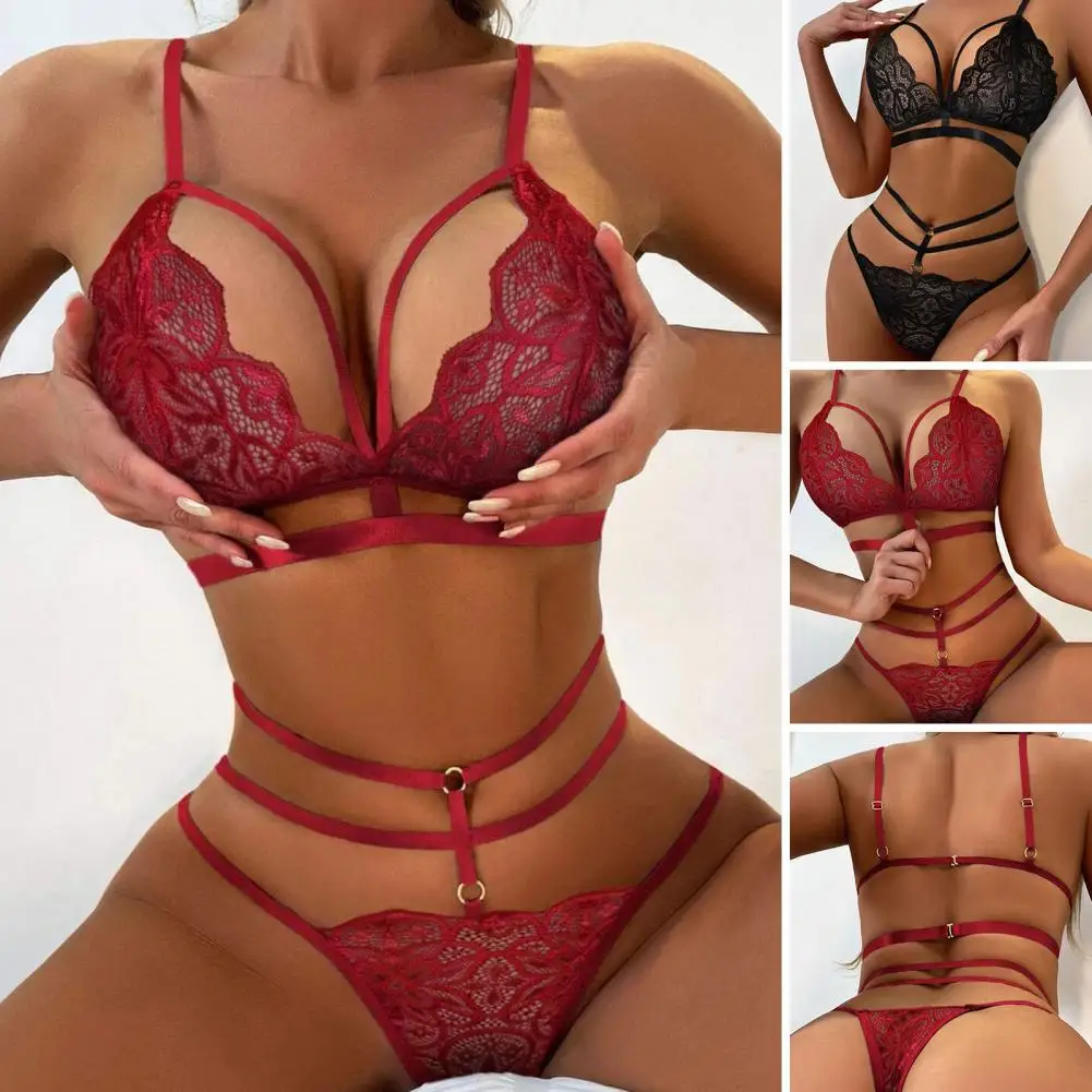 Multi Layer Straps Underwear Set Bra Set Exquisite Lace Underwear Set Hollow Design High Waist Multi Layer Straps Ultra-thin