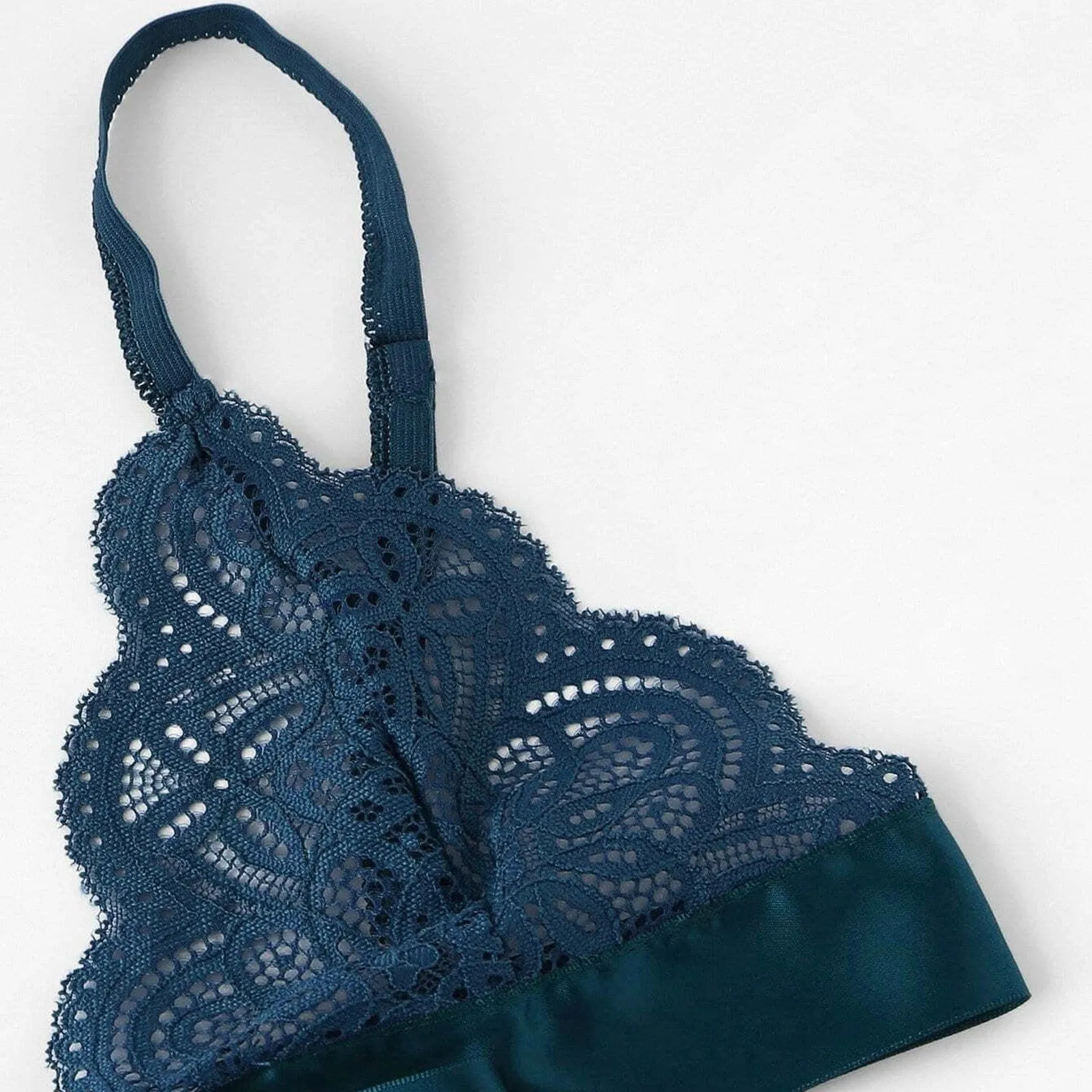Women's 2 Piece Side Set Tie Scalloped Trim Women Erotic Babydoll Bowknot Lace Underpant Bralette Lingerie Bra Sexy Underwear