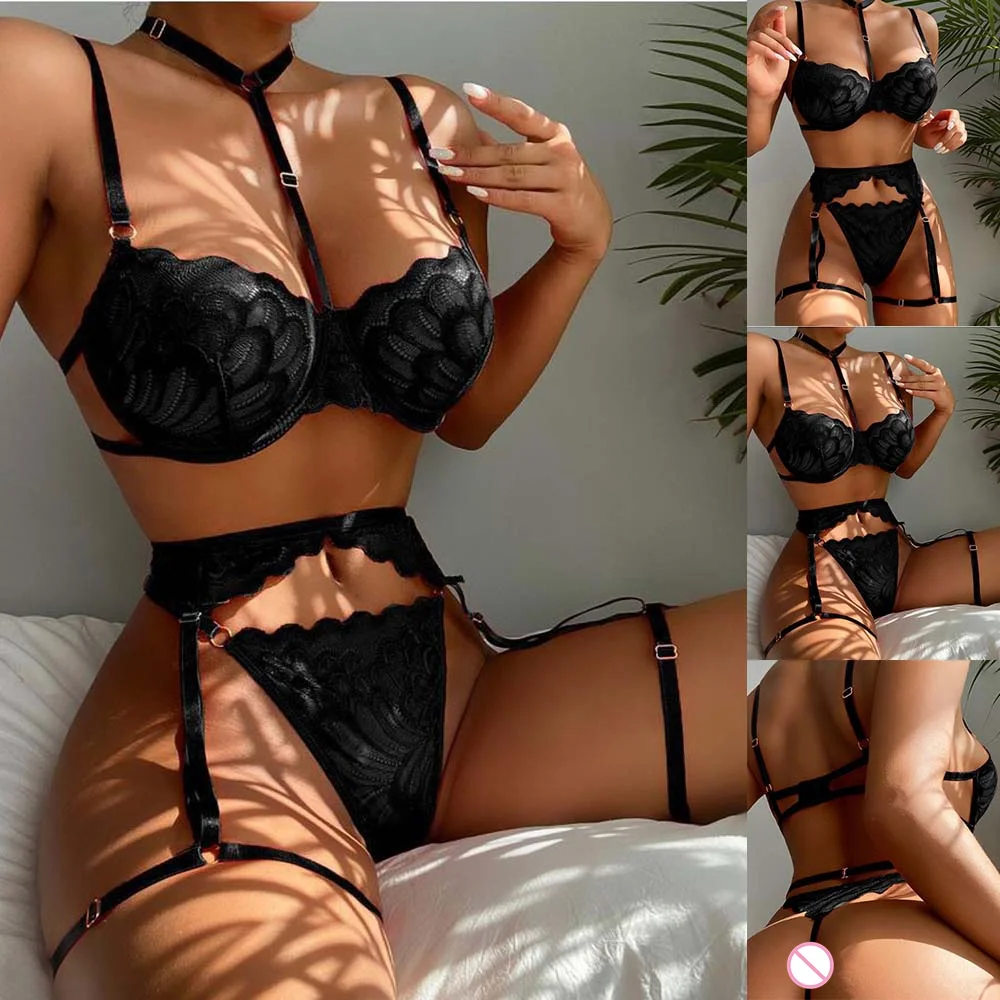 Name | Sexy Women Elastic Lingerie Lace Dress Breathable Low Rise Underwear W/Garter Belt Set Seamless Nightwear Soft Sleep Sleepwear |