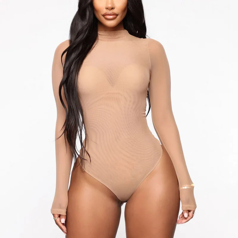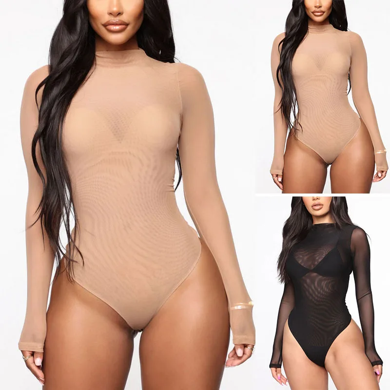 Name | Women Bodysuit See-through Mesh Solid Long Sleeve Jumpsuits Ultra-thin Elastic Underwear Breath Lingerie Seamless Erotic Wear |
