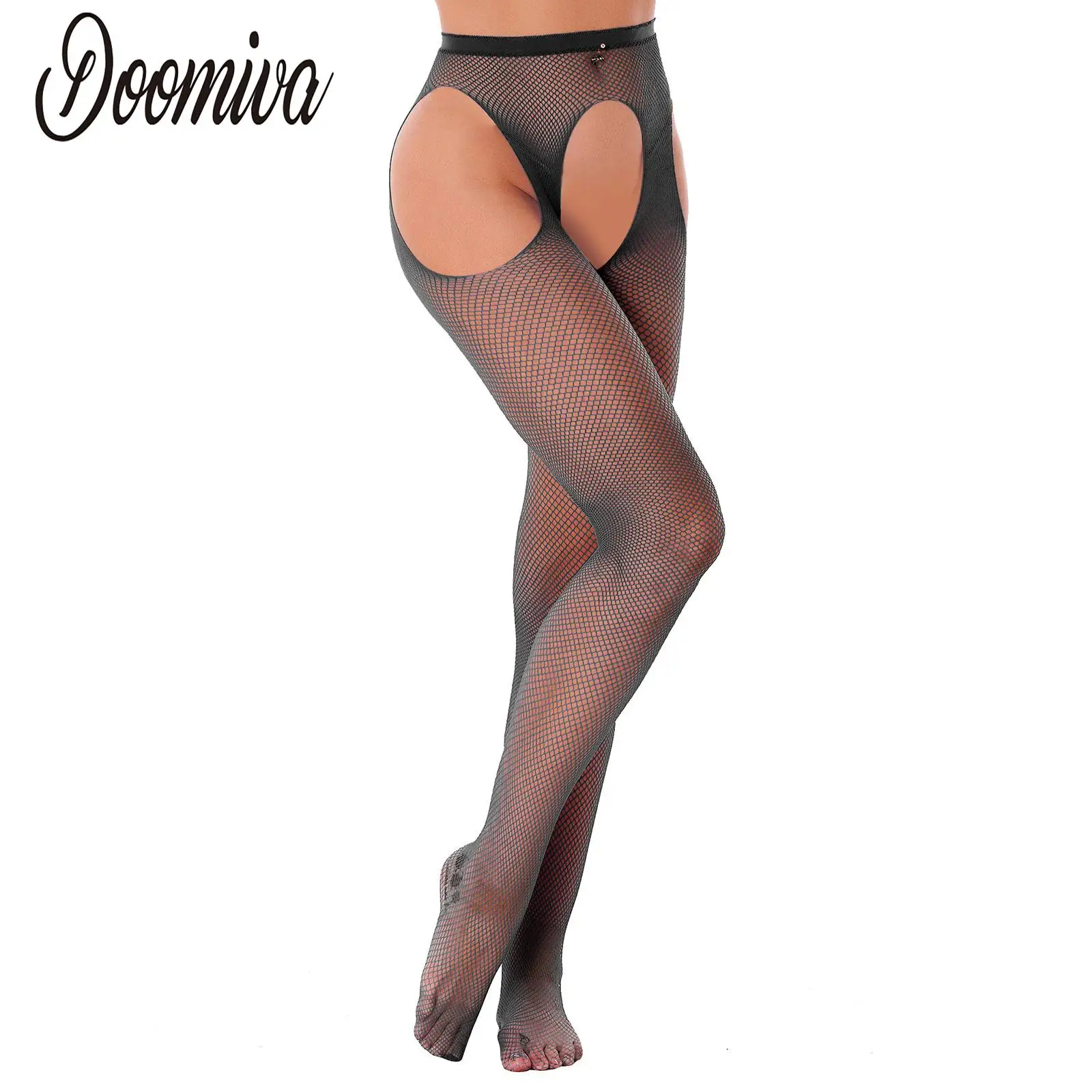 Women Sexy Stretchy Mesh Leggings See Through Sheer Hollow Out Fishnet Stockings Cutout Crotchless Tights Pantyhose Solid Color