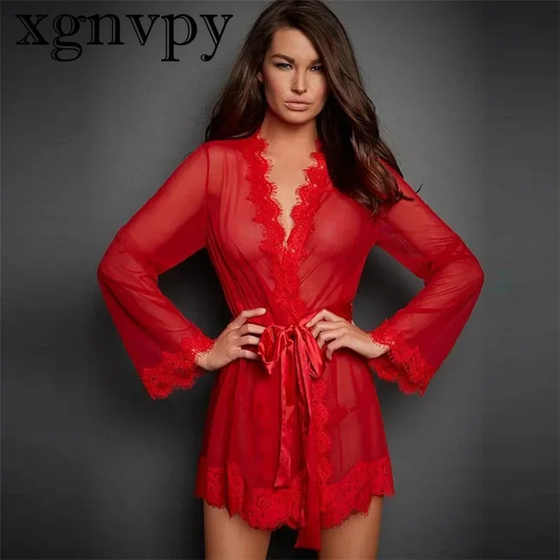 xgnvpy Sexy Lingerie Women Erotic Pajamas Lace Sex Clothes Babydoll Transparent Dress Black Hot Lingerie Garment
