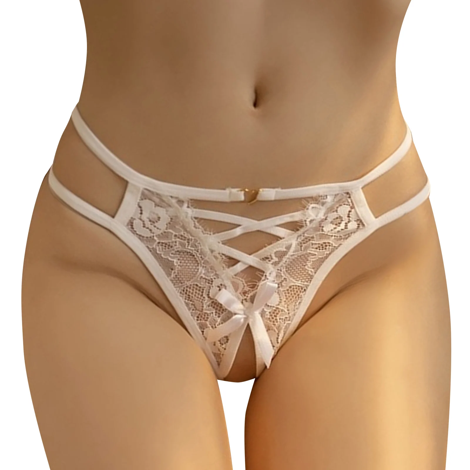 Women Floral Lace Thongs Transparent Open Crotch Criss Cross Hollow Bowknot G-String Panties Sensual See Through Erotic Costumes