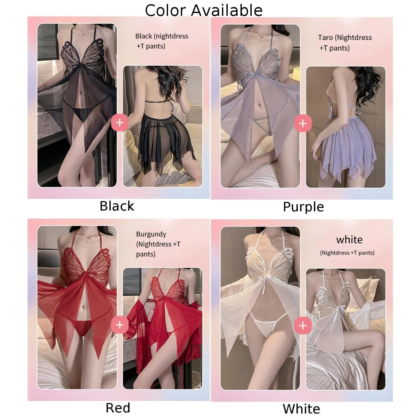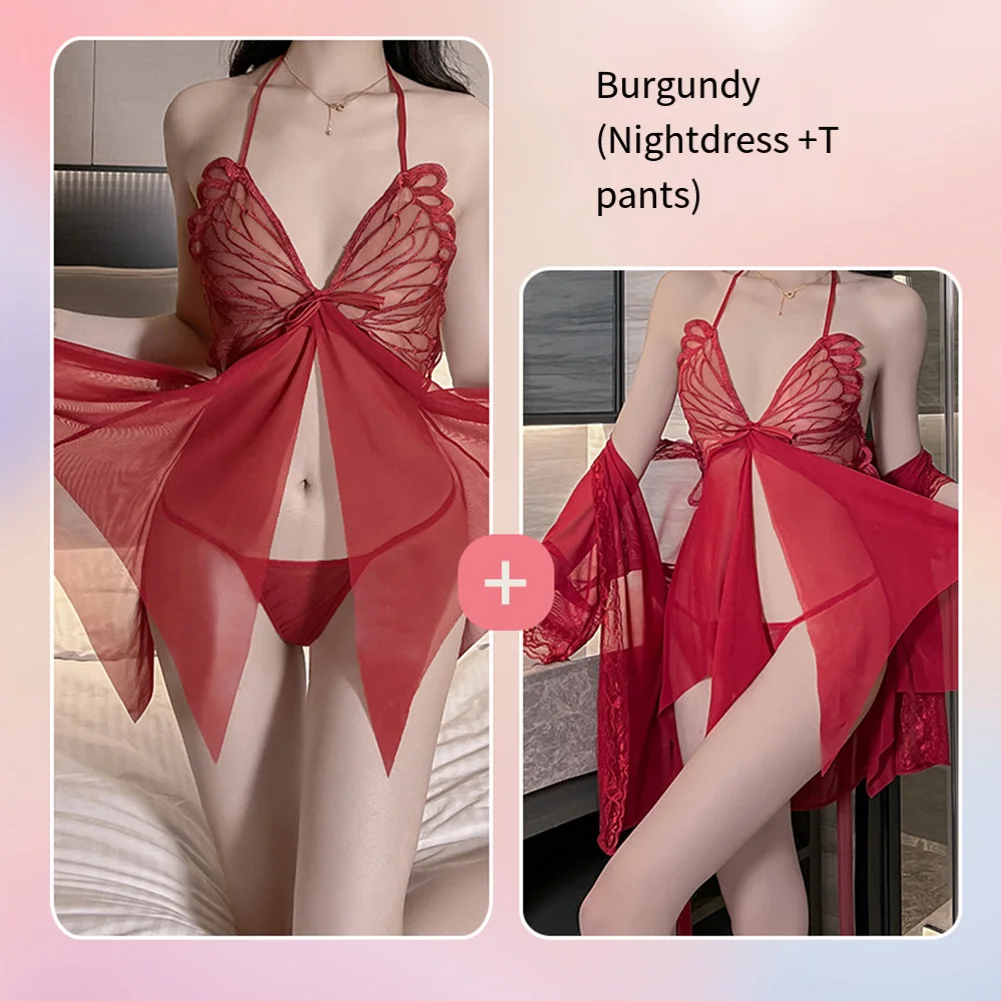 Women Sexy Lingerie Ultrathin Lace Butterfly Mesh Transparent Porn Nightdress Thong Set Split Nightwear Porno Clubwear