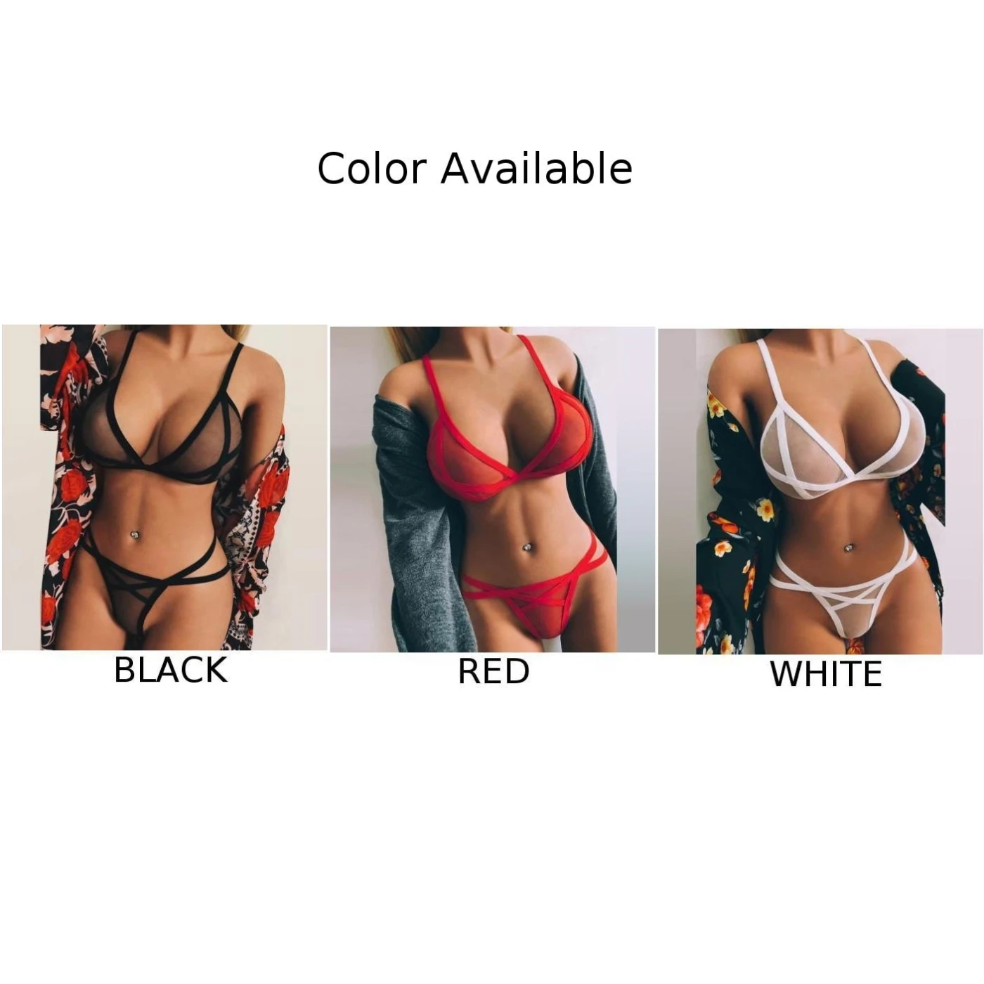 Name | Women’s Sexy Lingerie Suits Mesh See Through Set Wireless Sheer Trikini Elastic Underwear Top Transparent Cosplay Panties Set |