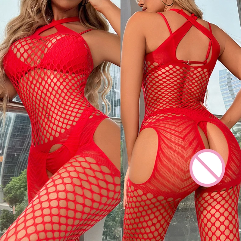 Hot Sexy Bodystockings Lingerie Bodysuit Underwear Women Fishnet Crotchless Mesh Tights Erotic Babydoll Perspective Sex Costumes