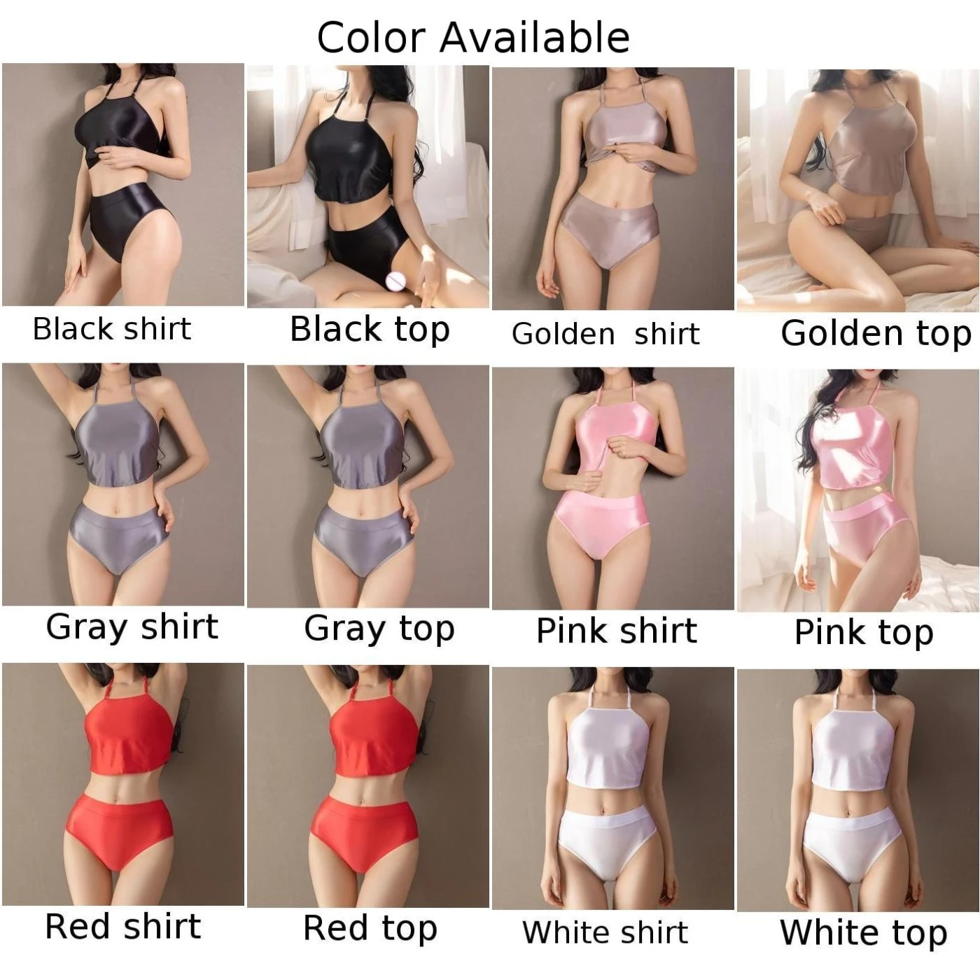Name | Seductive Satin Halter Camis Top With High Waist G String Women\\\'s Stylish Brief Underwear Size Golden Brown |