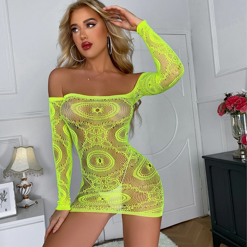 One-piece Lace Fishnet Hollow Out Sexy Lingerie Tight Corset Dress Women Babydolls Integrated Pajamas Underwear Erotic Costumes