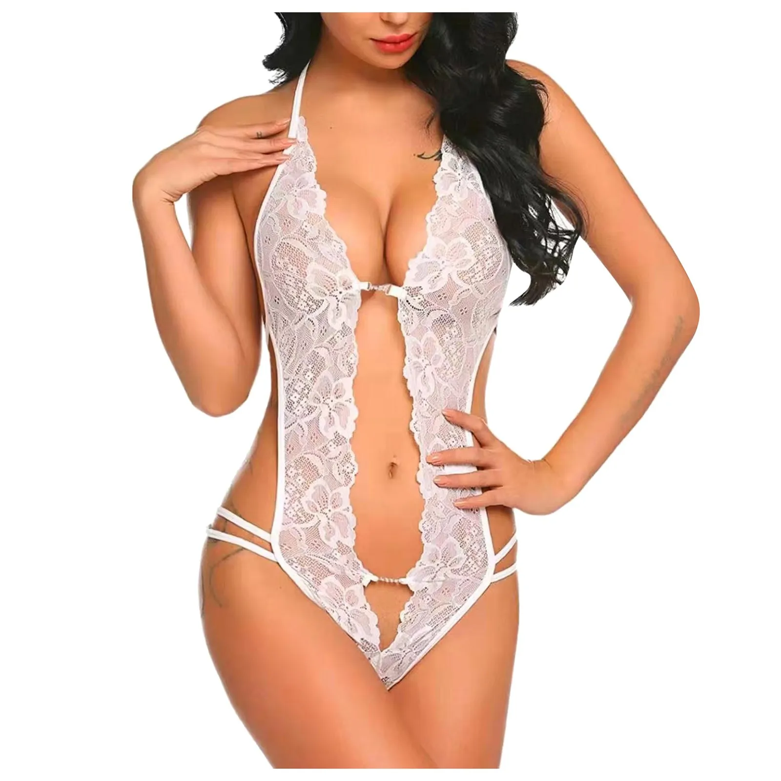 Women's 1 Piece Lingerie Transparen Sexy Lace Up Bodysuit Deep V-Neck Open Bra Erotic Teddy Backless Babydoll S~XXL Features