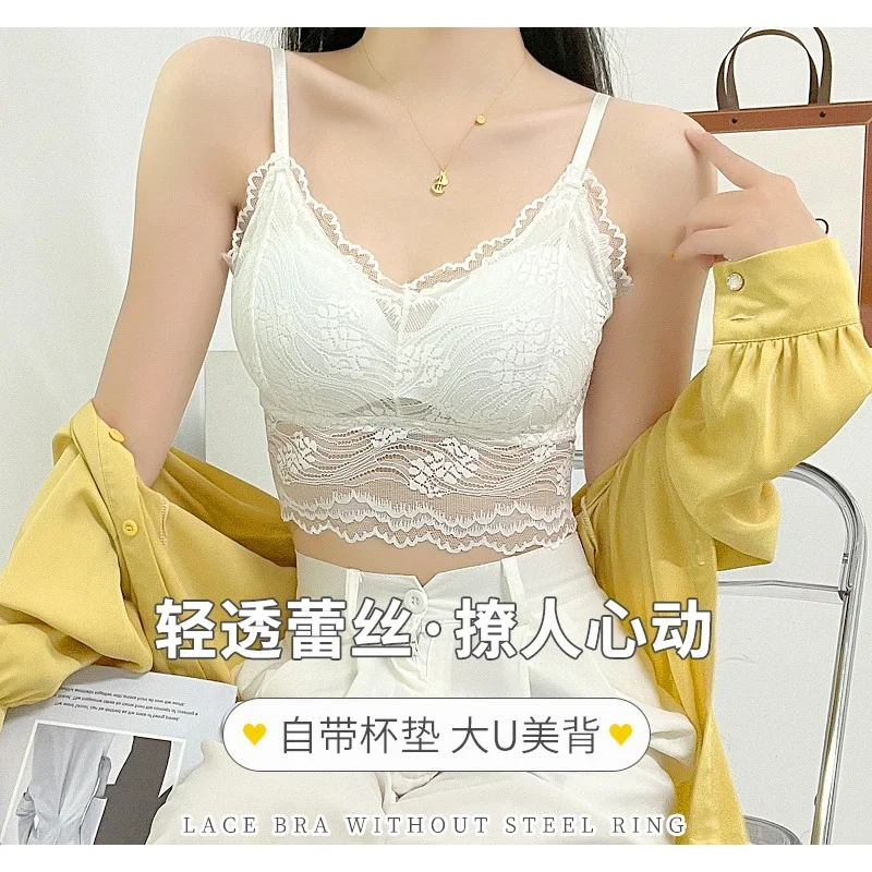 Large U-Shaped Beautiful Back Lace Camisole Anti-Wardrobe Malfunction Base Wrapped Chest Breathable Traceless Inner Wear Push up