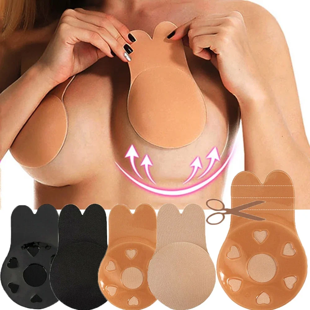 Rabbit Push Up Bras for Women Self Adhesive Silicone Strapless Invisible Bra Reusable Sticky Breast Lift Up Tape Nipple Cover