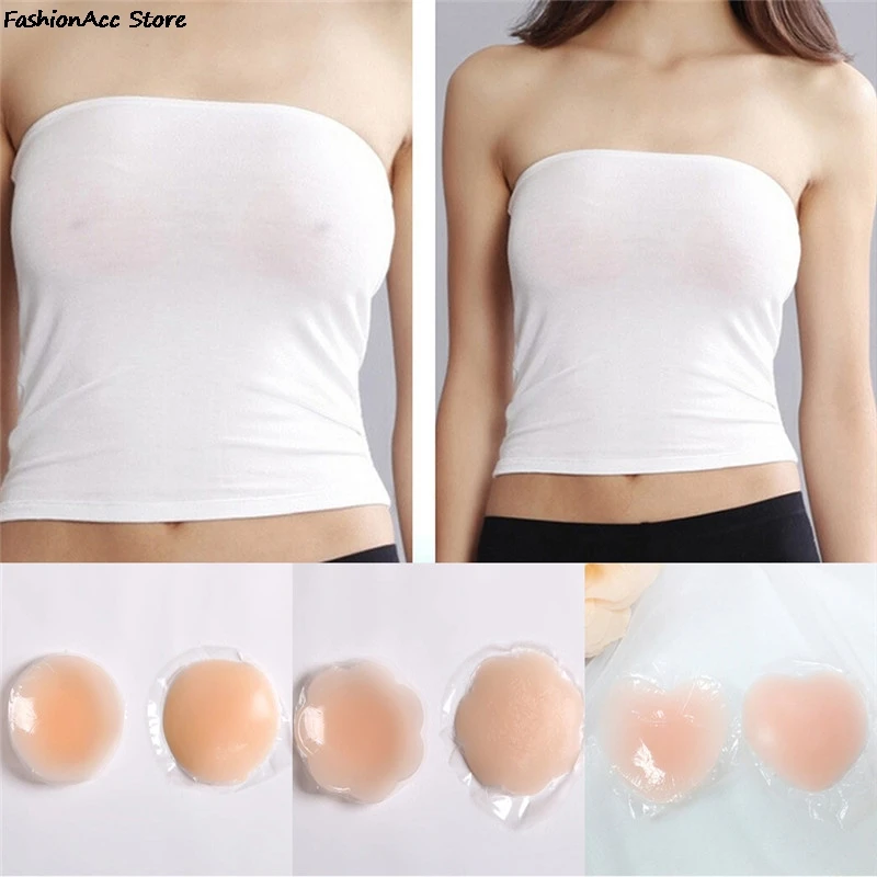 Invisible Reusable Self Adhesive Silicone Bra Pasties Chest Stickers Round/Heart Shape Pasties Nipple Cover
