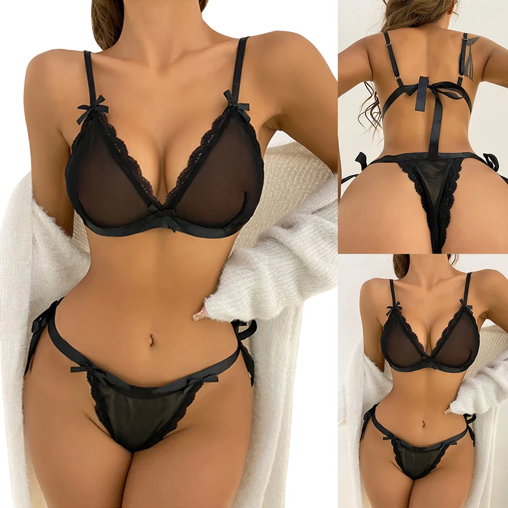 Women Sexy Lingerie Mesh Sheer Breathable Underwear Nightwear Briefs Bra Sets