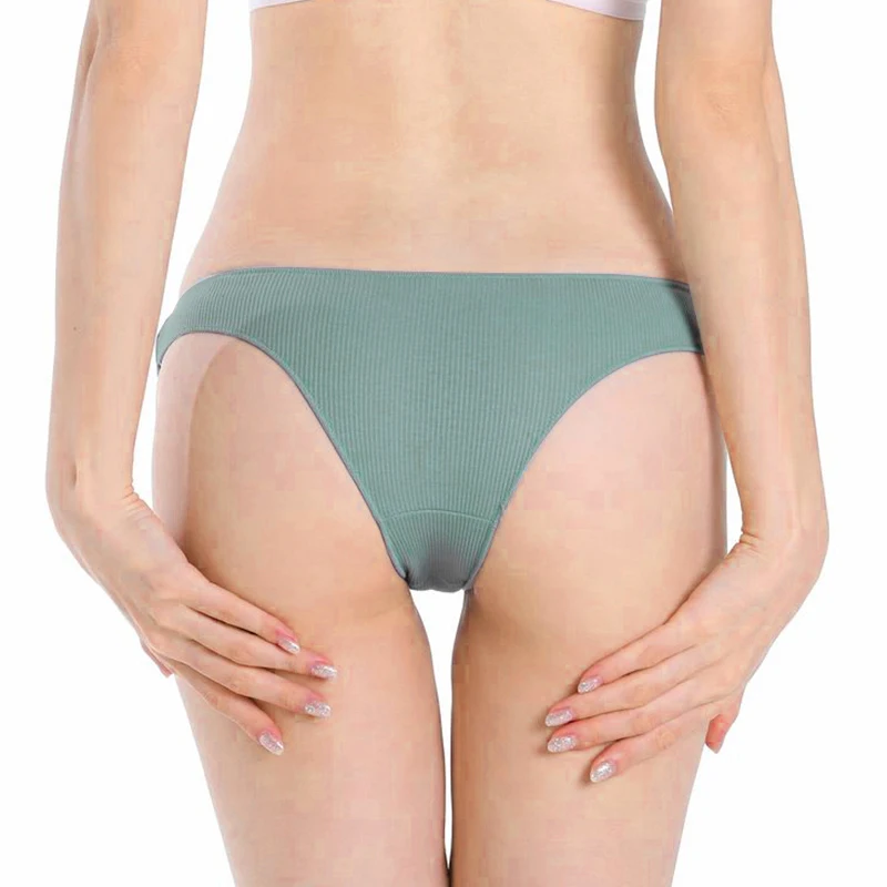 Women Sexy Ribbed Thongs Cotton Low-Waist Underpants T-back Briefs Breathable Underwear Lingerie Intimates