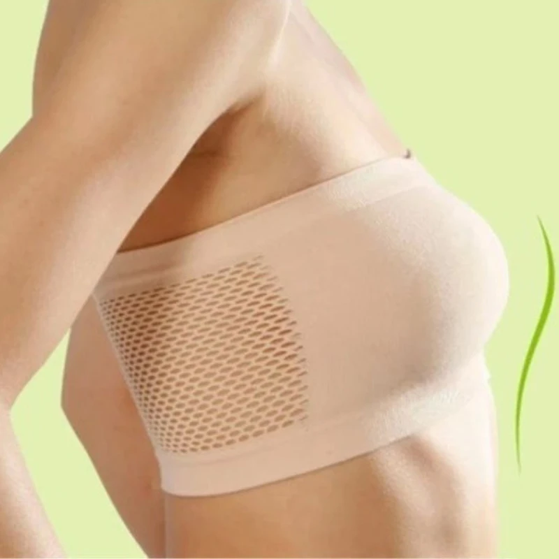 Summer Breathable Mesh Tube Bra Strapless Bra Bandeau Invisible Strapless Crop Top WomenSexy Bralette Bra Bandeau Boob Underwear