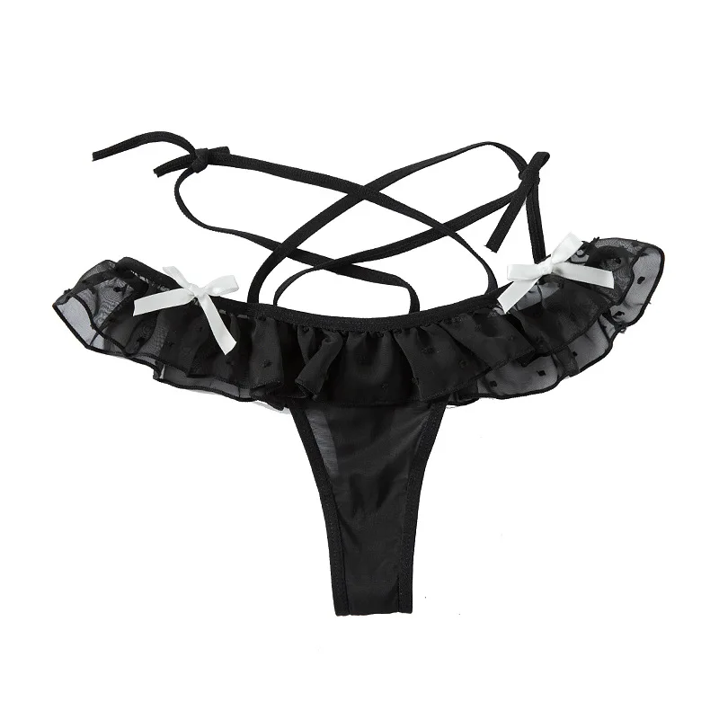 Sexy Women Maid Cosplay Hot Thong Lace Waist Hollow Bow T Pants Female JK Panties Sexy Lingerie Low Waist Wave Point Perspective