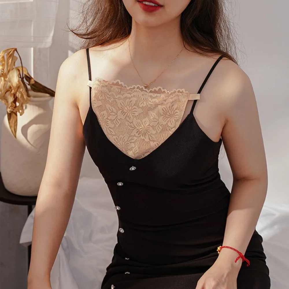 Double Layer Strapless Insert Wrapped Chest Floral Mesh Lace Flower Anti-Glare Tube Top Underwear Thin Clip-On Mock Camisole