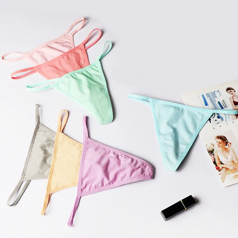Knickers Women Solid Color Low Waist Cotton Thin Strap Briefs Thong Panties G-String Panties