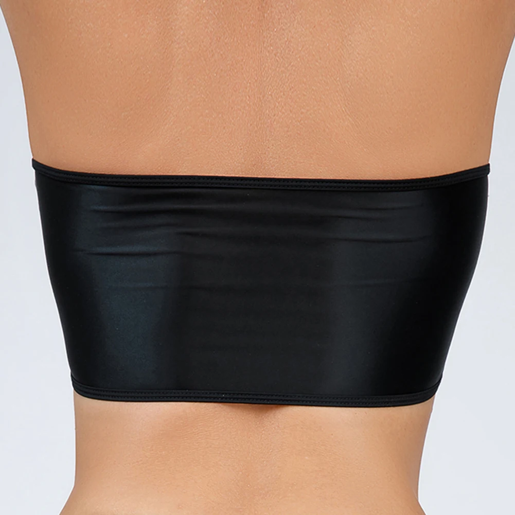 Attractive Women Clothes Oil Glossy Shiny Strapless Crop Tube Top Japanese Princess Panties Rave Bandeau Bra Tank Top T-shirt