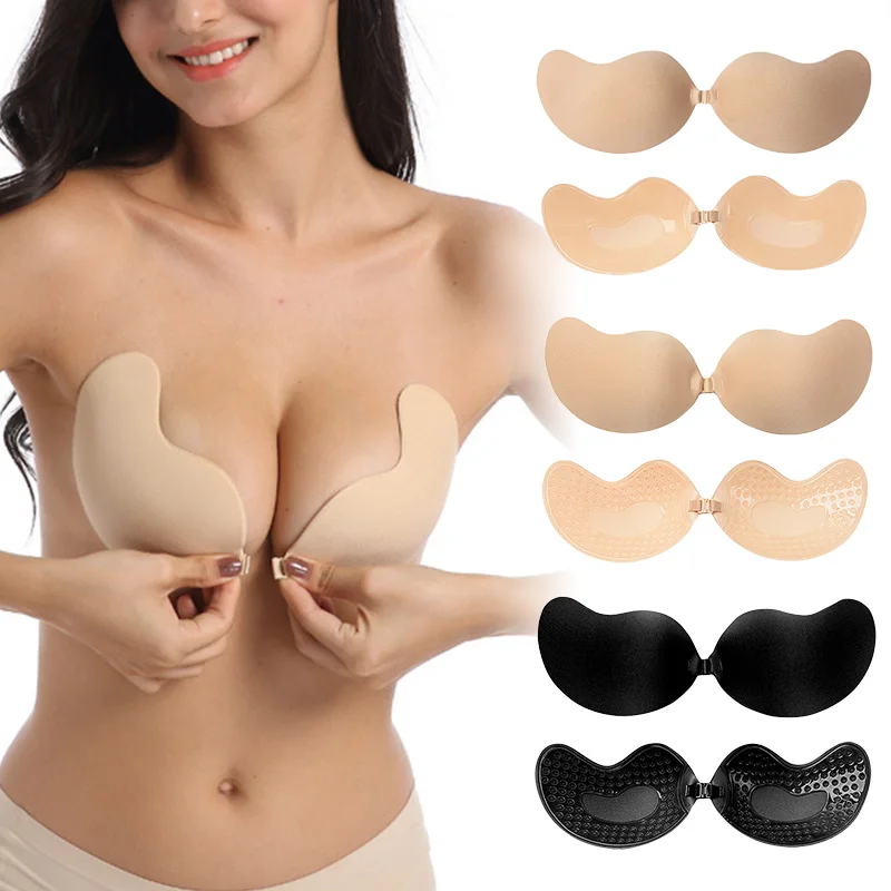 1pc Reusable Invisible Push Up Bra Backless Strapless Bra Front Closure Bralette Underwear Women Self-adhesive Silicone Sticky