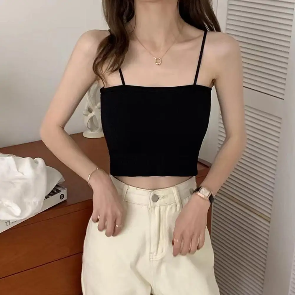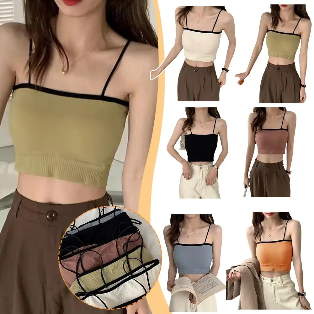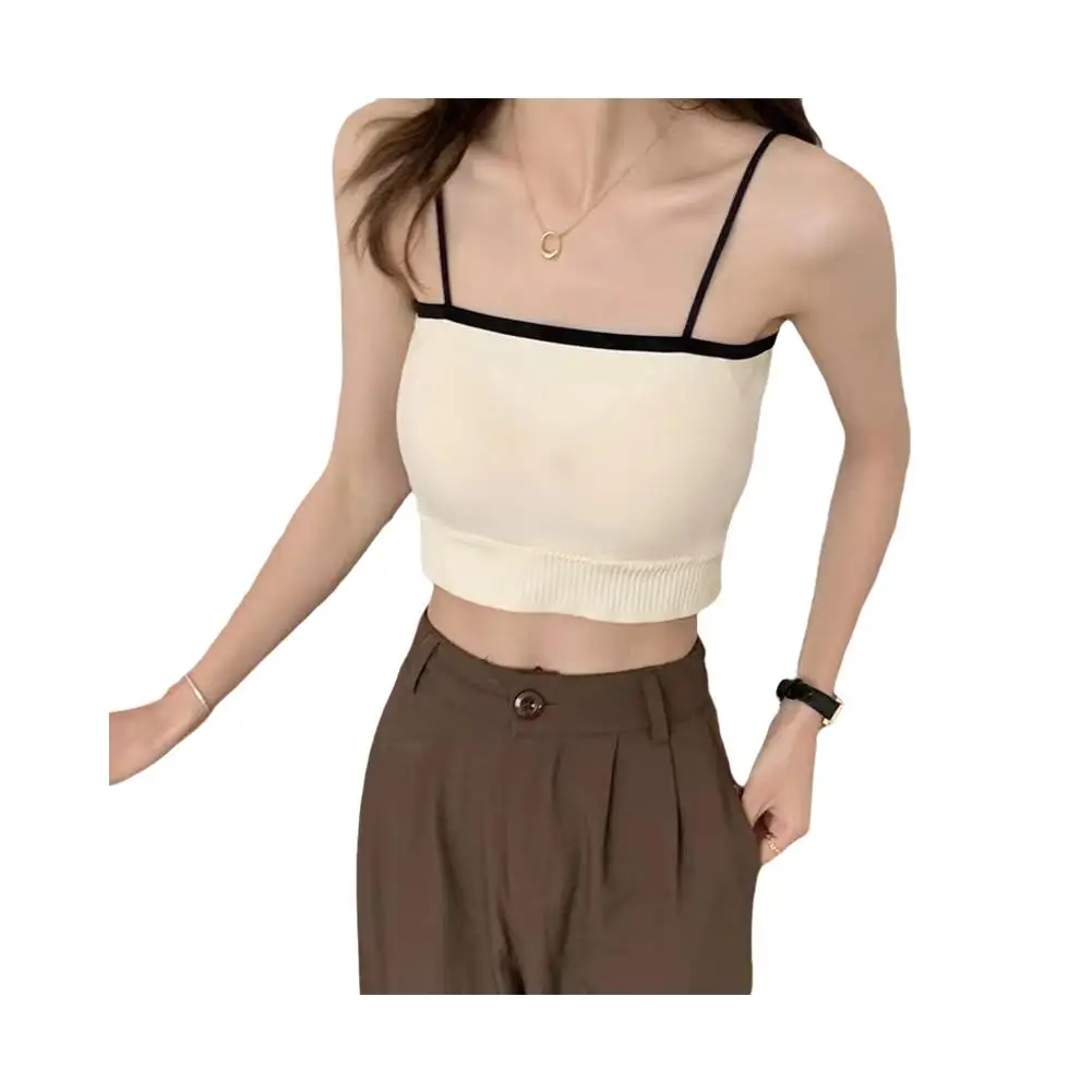 Women Tank Top Sports Ribbed Female Crop Tops Seamless Wireless Bras Sexy Lingerie Girls nderwear Cami O-neck Camisole Outerwear