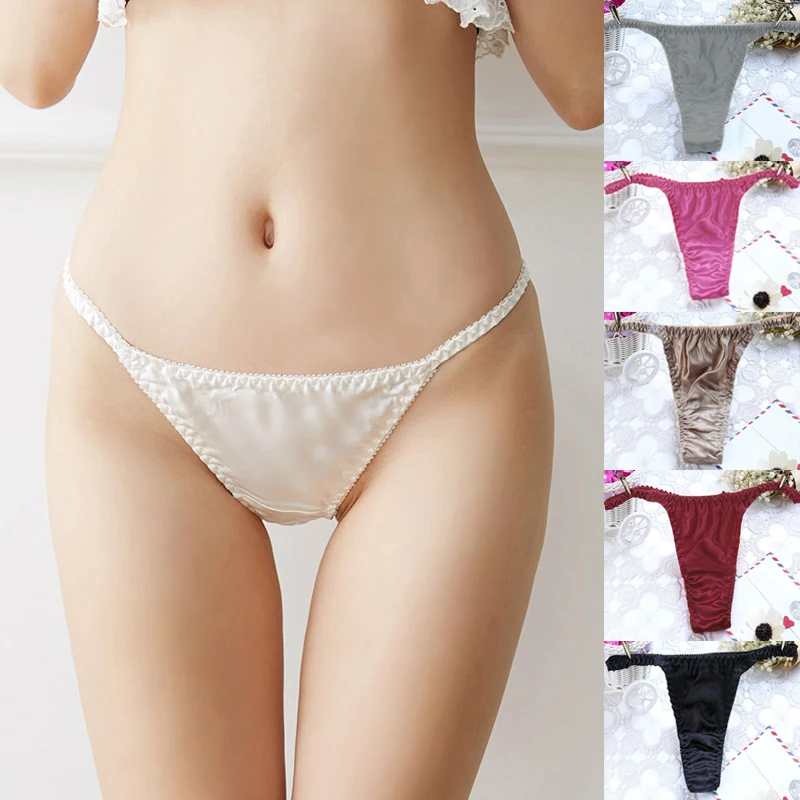 1pcs 100% Mulberry Silk T-back Panties Sexy Low-waist Thongs Ladies Smooth Soft Breathable Underwear Trendy Pure Color Briefs