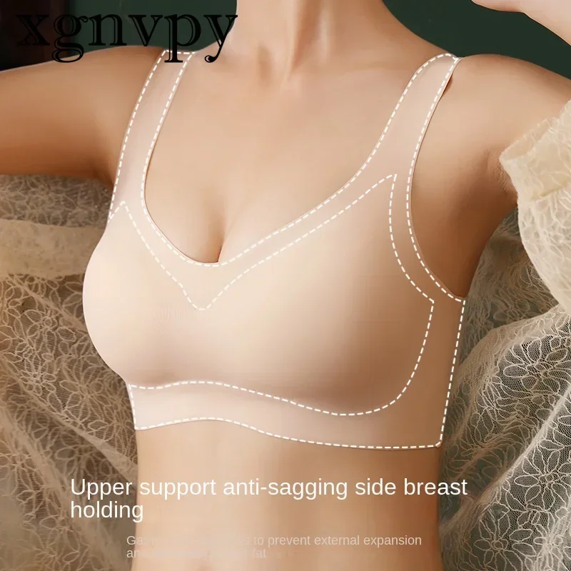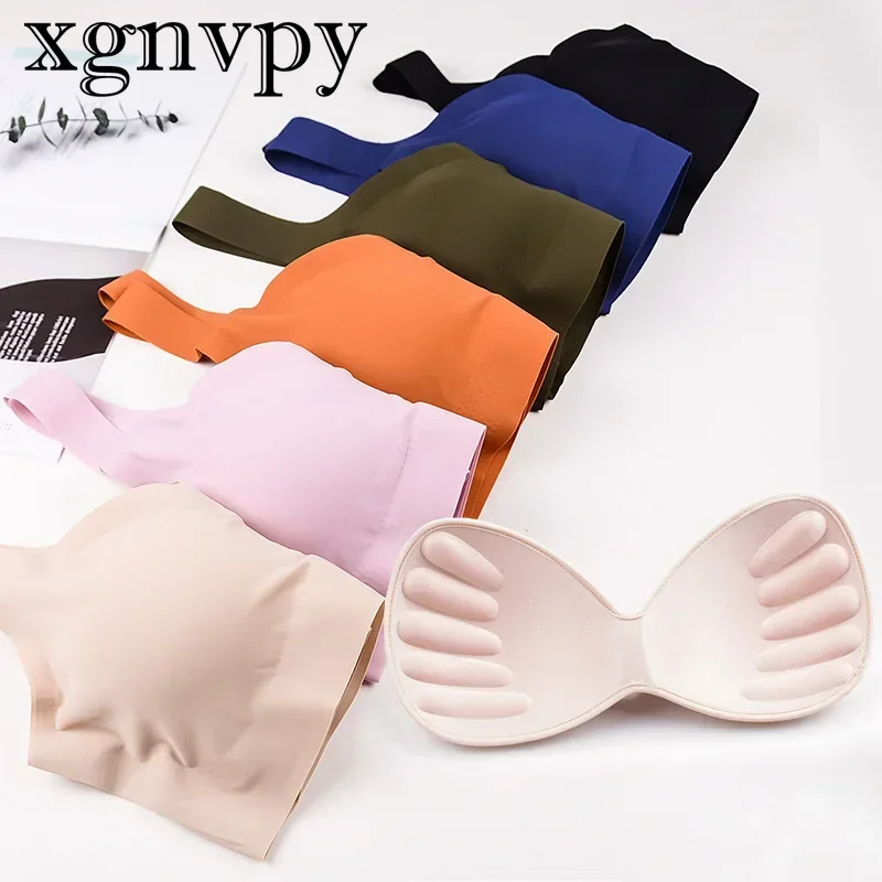 xgnvpy Ice silk seamless underwear peace of mind fourth generation women one-piece vest bra without underwire sports sleep bra