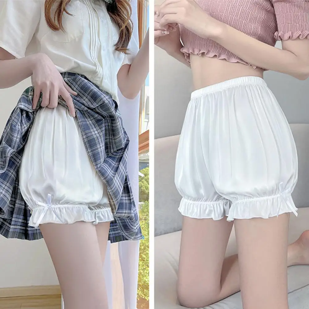 Women High Waist Ruffle Cuffs Safety Shorts Pumpkin Lantern Shape Short Pants Loose Bottoming Shorts Summer Thin Bloomers