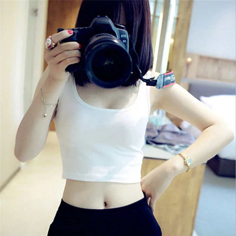 Summer Slim Render Short Top Women Sleeveless U Croptops Tank Tops Solid Black/White Crop Tops Vest Tube Top
