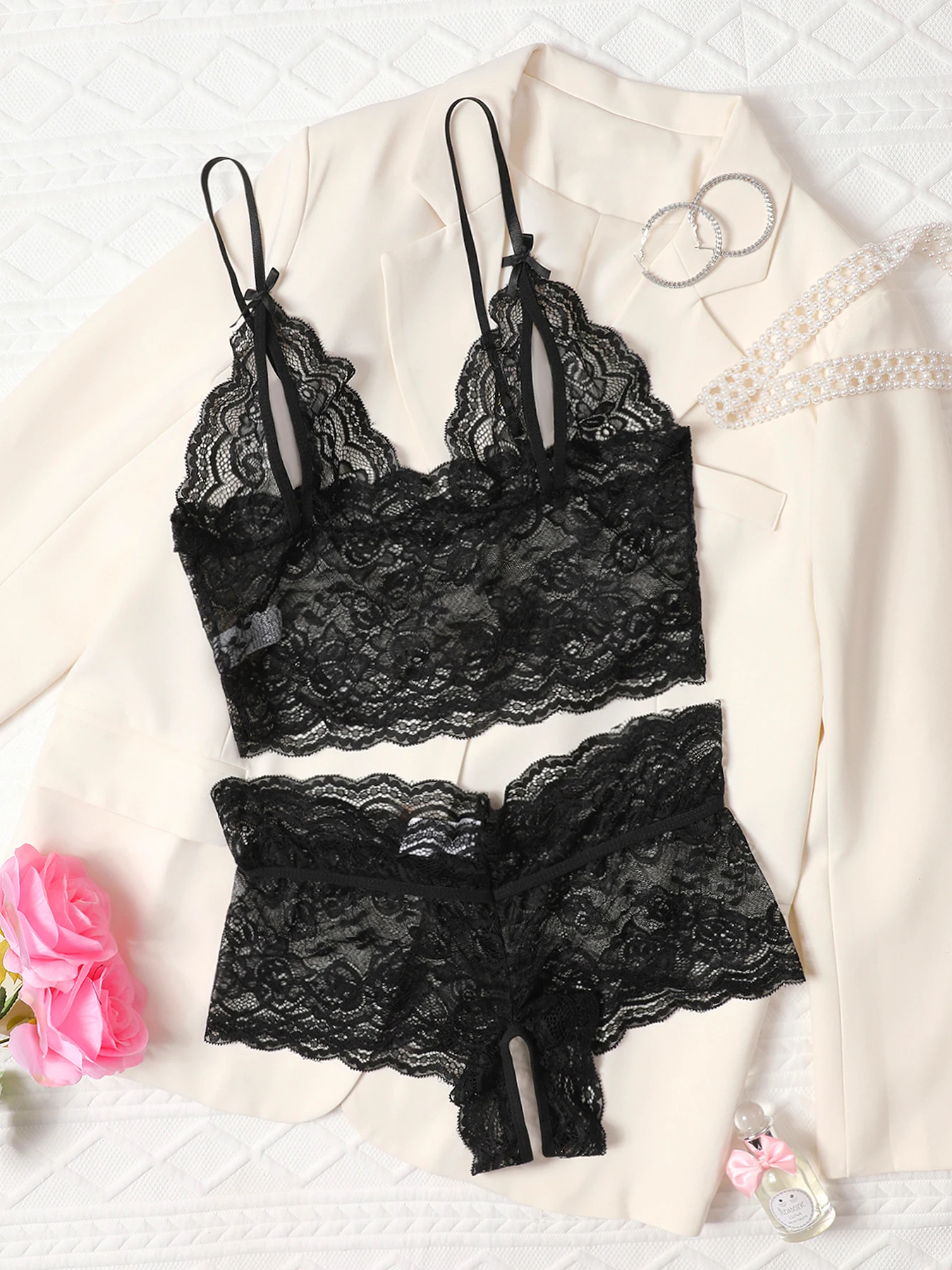 Erotic Bra Two Piece Set Sexy Lingerie Woman Lace Transparent Underwear Brief Sets Bra Kit Push Up Breves Sets Sexy Lenceria