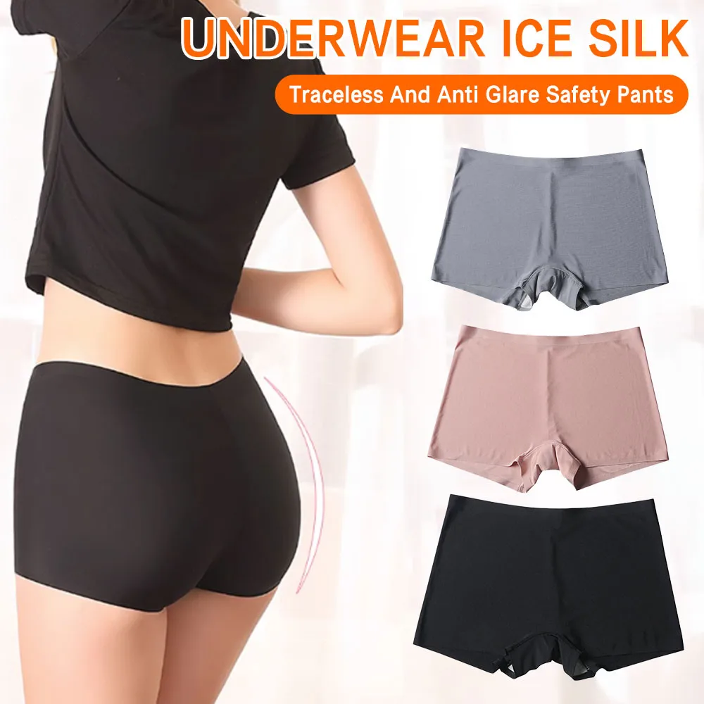 Women Panties Seamless Safety Short Pants Summer Breathable Ice Silk High Waist Stretch Shorts Boyshorts Under Skirt Underwear