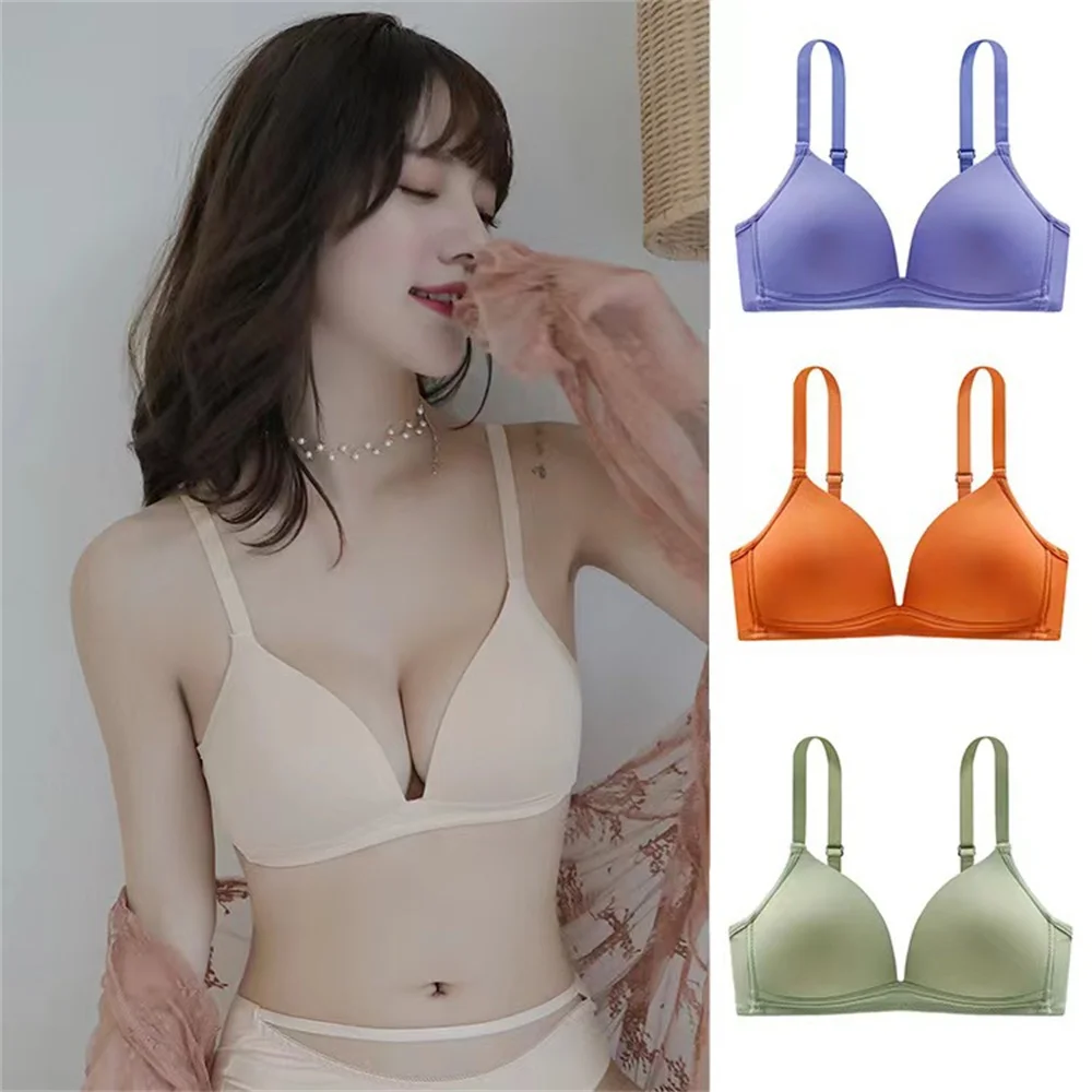 Sexy Push Up Women Bras For Girl's Seamless Wireless Adjustable Soft Brassiere Solid Color Ultra-thin Triangular Cup Underwear
