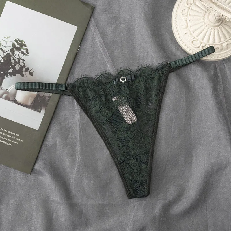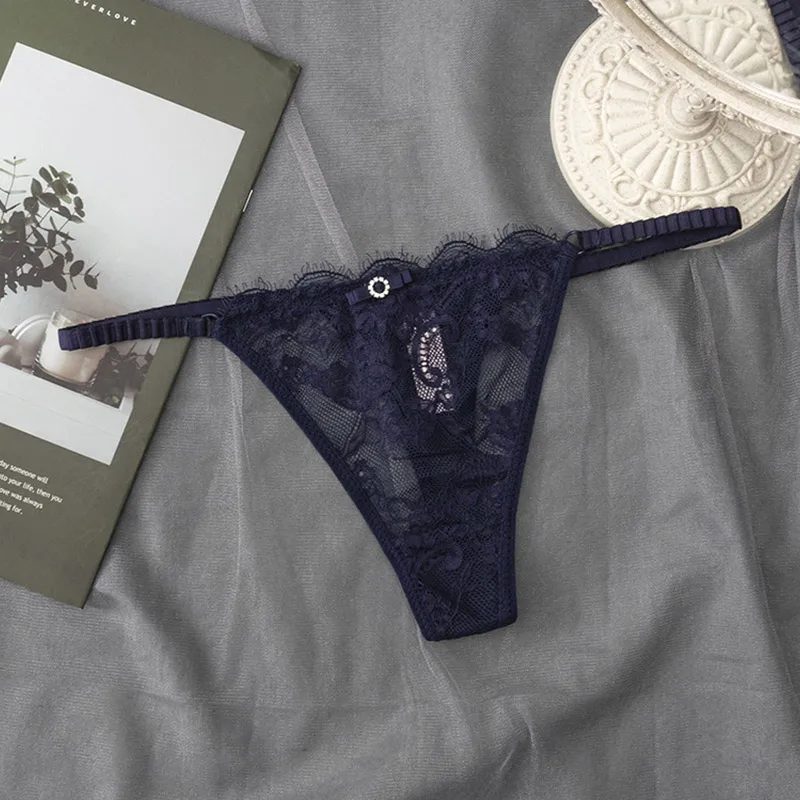 Women Sexy Lace Panties String Underwear Hollow Out Thong Sex Low Waist Seamless Briefs Mesh Sheer Lingerie Underpants G-string