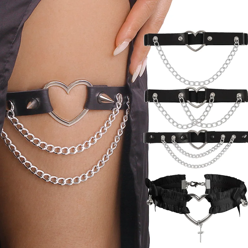 Name | Lolita Leg Garters Gothic Leather Garter Belt Heart Chain Cross Elastic Choker Leg Ring Strap Cosplay Bondage Lingerie Harness |