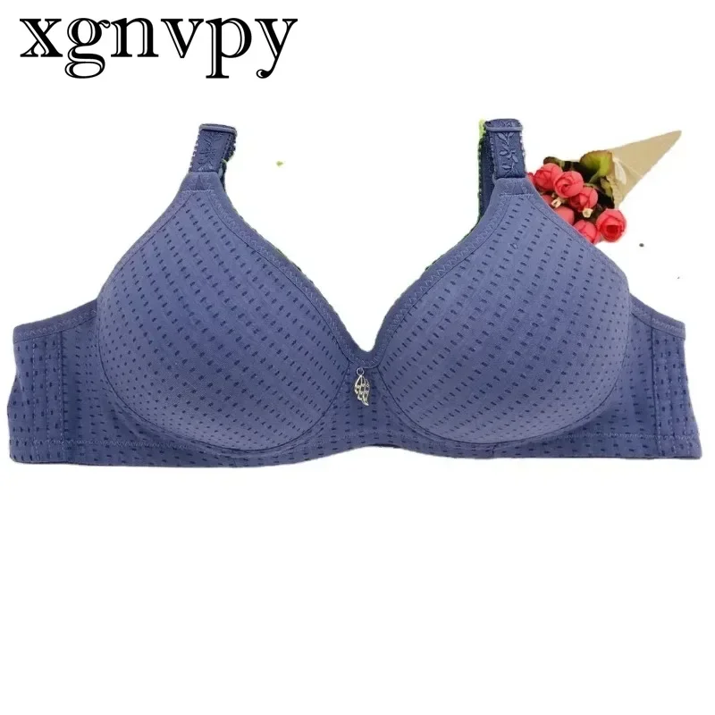 xgnvpy Large Cotton Mom's Steel Rimless Bra Bamboo Charcoal Medium and Old Age Thin Cotton Bra Plus Size Bra