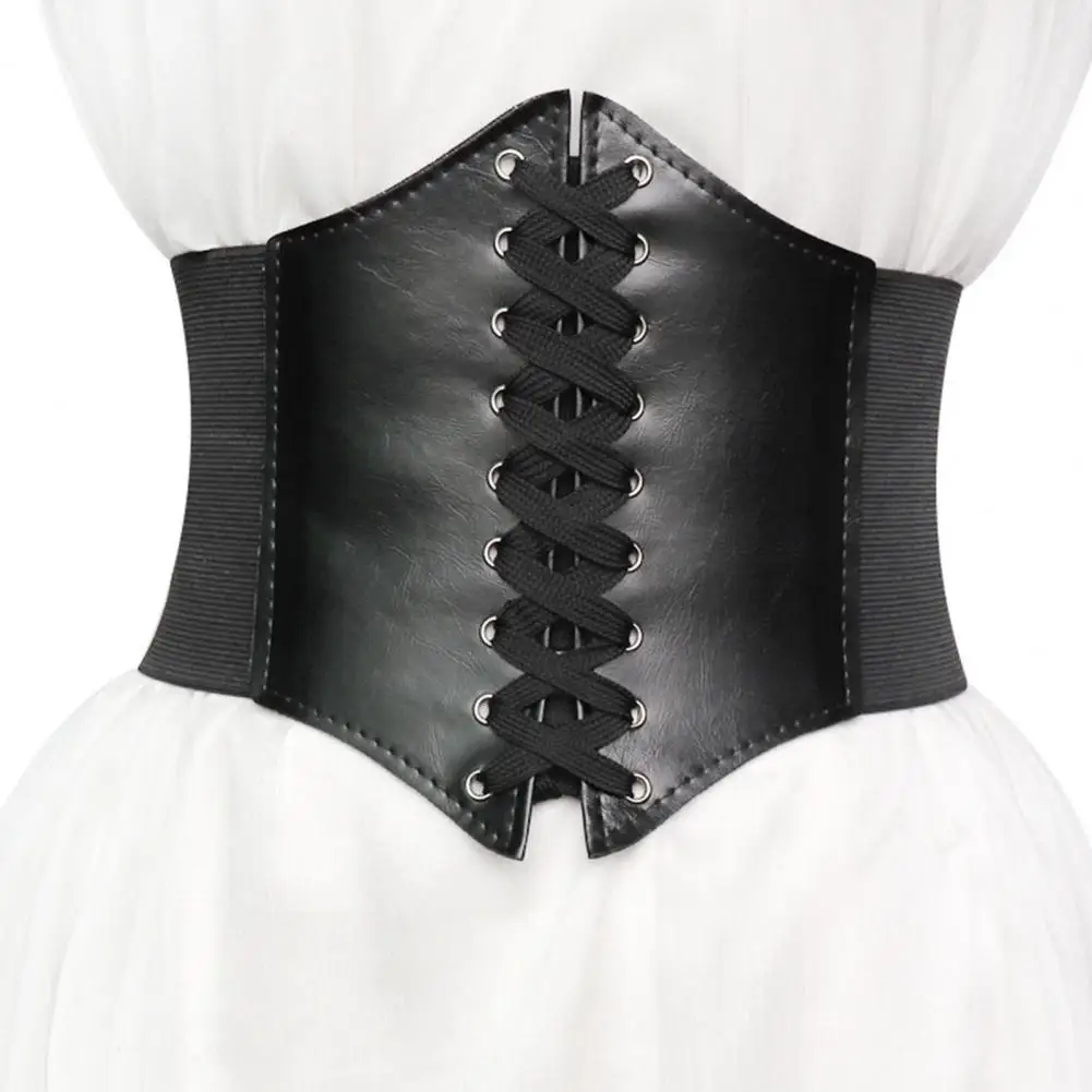 Women Waist Band Wide Hook Loop Fasteners Waist Belt Faux Leather Elastic Body Shaping Girdle Belt Corset