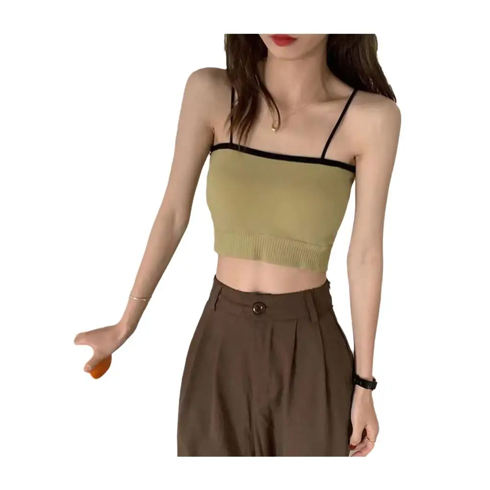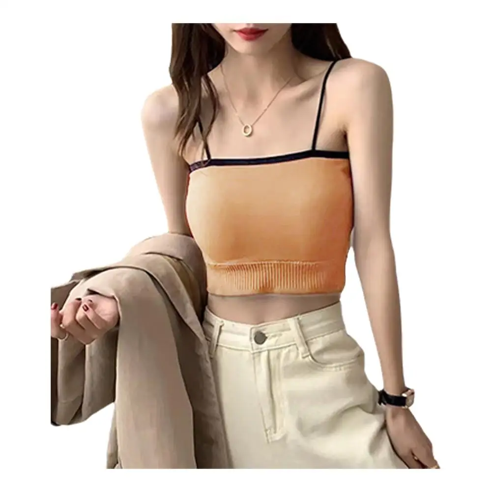 Women Tank Top Sports Ribbed Female Crop Tops Seamless Lingerie Wireless Bras nderwear Outerwear Cami Sexy Camisole O-neck E2Q1