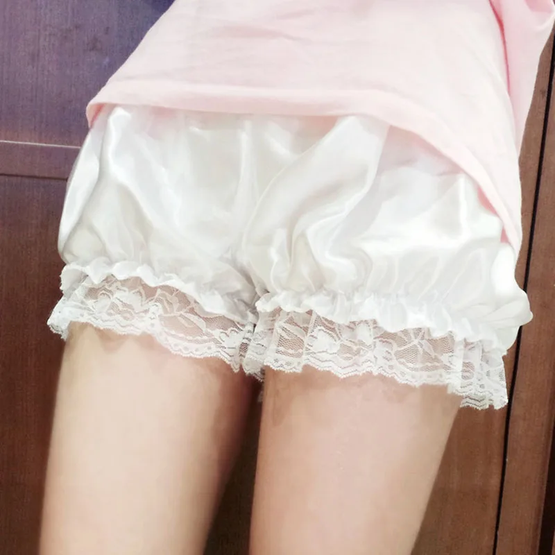 Women Lace Short Panties Imitation Silk Sleeping Shorts Pumpkin Shorts Lace Trim Panties Safety Short Pants Ladies Pajama Pants