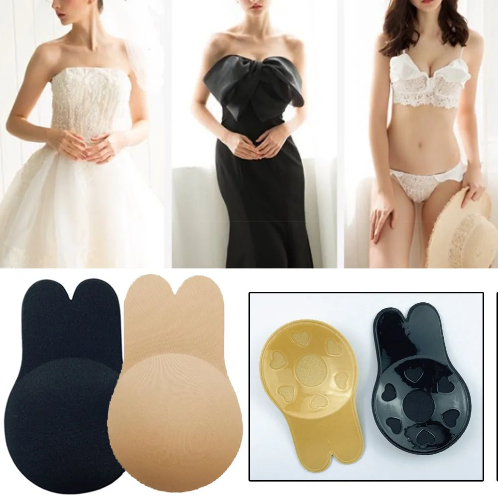 Women Push Up Bras Invisible Bra Self Adhesive Silicone Strapless Reusable Sticky Breast Lift Tape Rabbit Nipple Cover Bra Pads