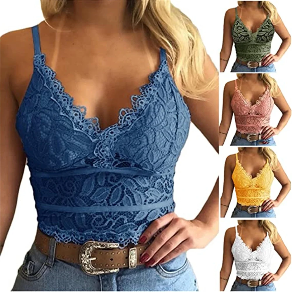 Women Lace Corset French Camisole Bra Wide Strap Tank Tops for Daily Casual Sleeveless Girl's Underwear Slim Hollow Pattern