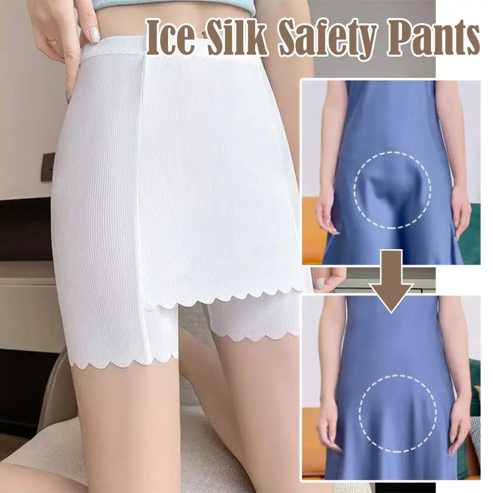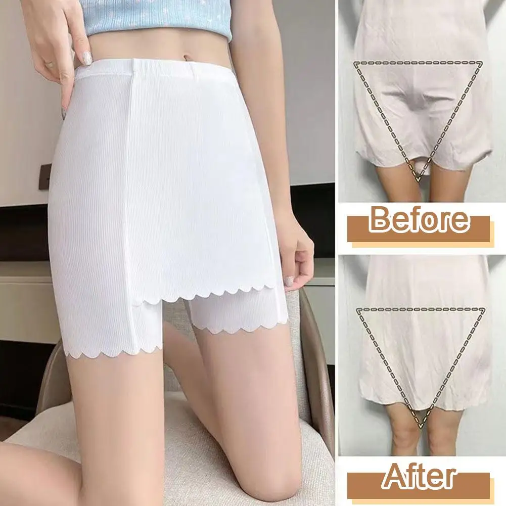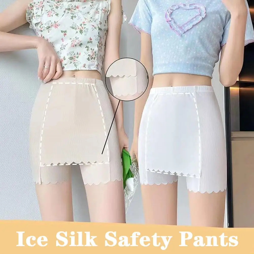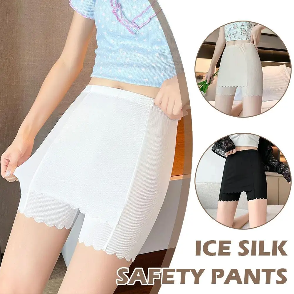 New Ice Silk Double-layer Safety Pants Summer Thin Seamless Wholesale Area Shorts Ladies Flanged Cover Triangle Leggings Q3E7