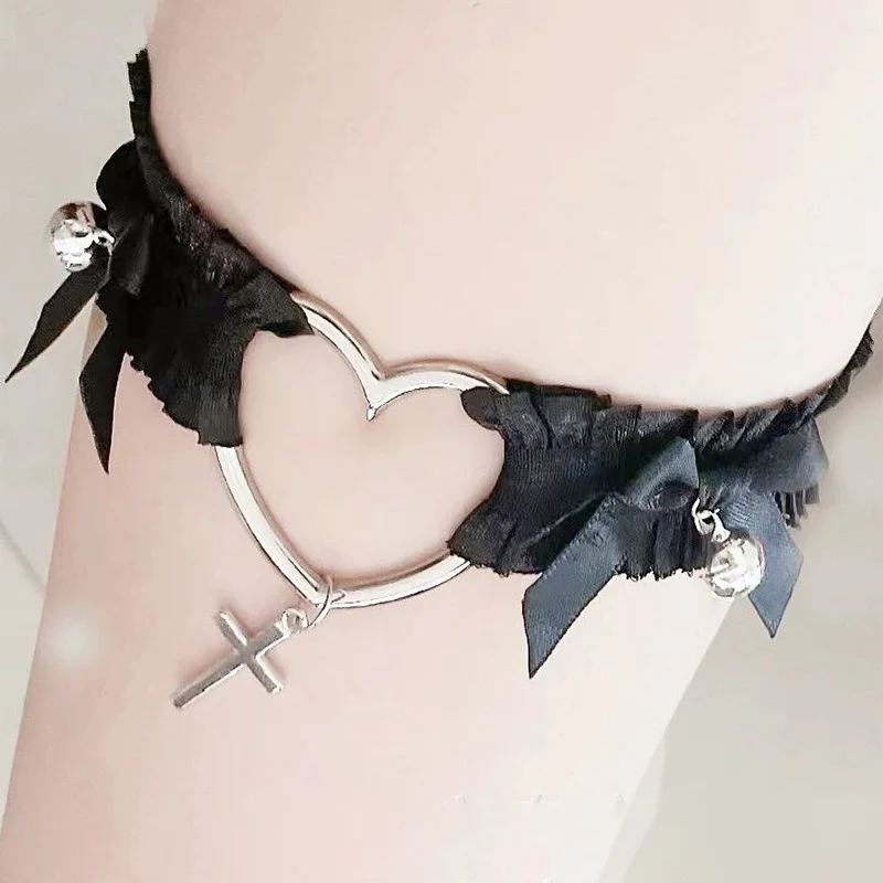 Name | Lace Heart Bow Leg Ring Lolita Girls Punk Cross Garters Belt Goth Elastic Bell Thigh Choker Chain Women Lingerie Cosplay Harness |