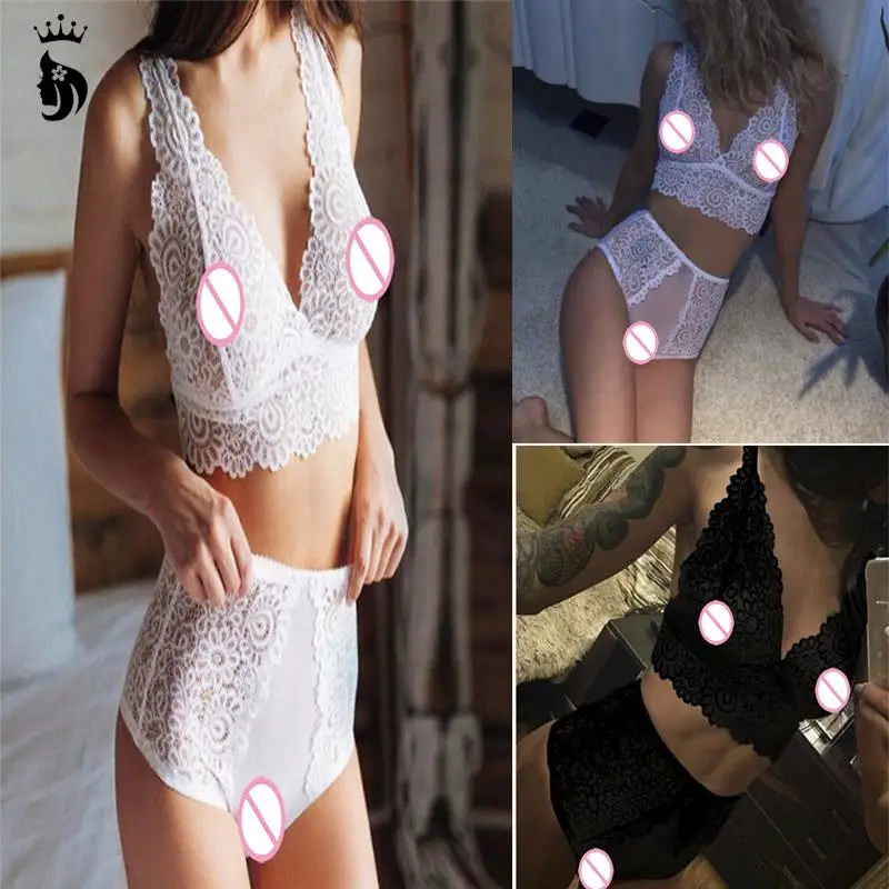 Plus Size Lace Sexy Bra Set Push Up Seamless Embroidery Bralette Erotic Lingerie Transparent Women Underwear Set