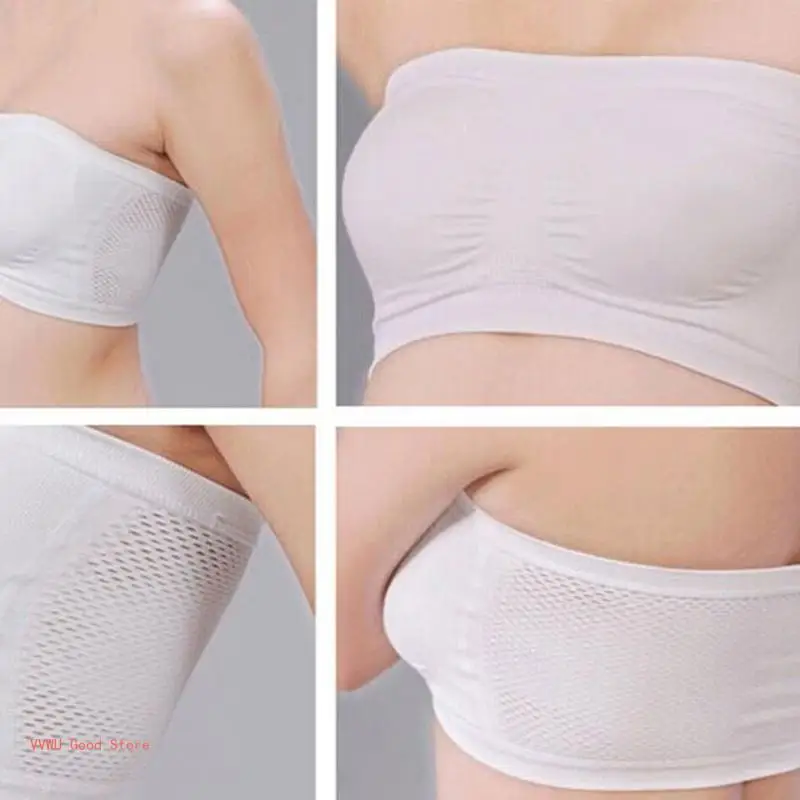 Womens Size Strapless Seamless Stretch Bandeau Tube Bra Top Back Mesh Solid