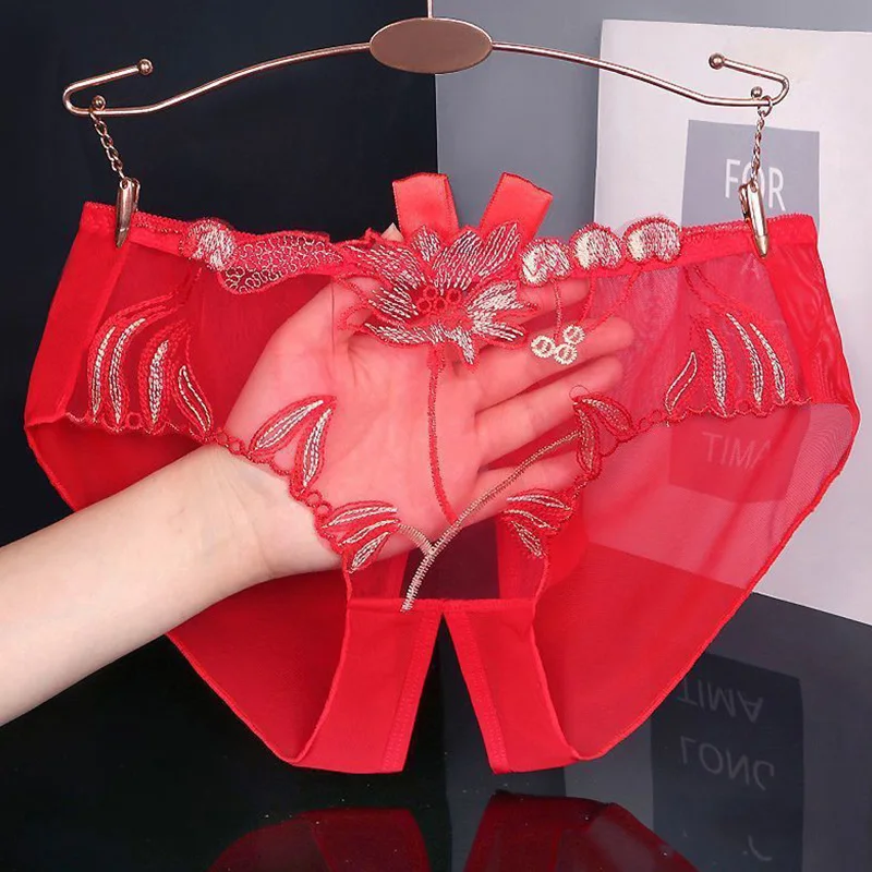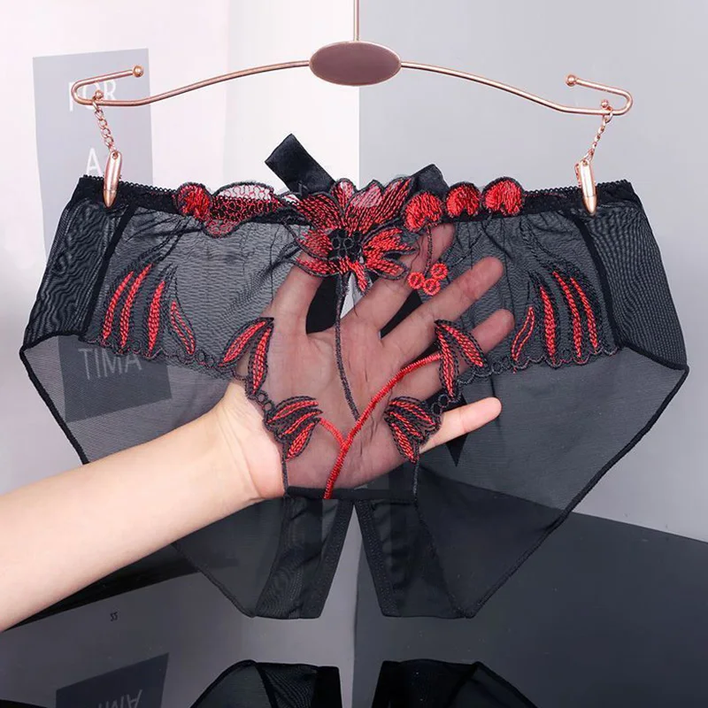 Sexy Lace Open Crotch Panties Women Ultra-thin Embroidery Ladies Mesh Transparent Panties Thongs String Lingerie Women Underwear