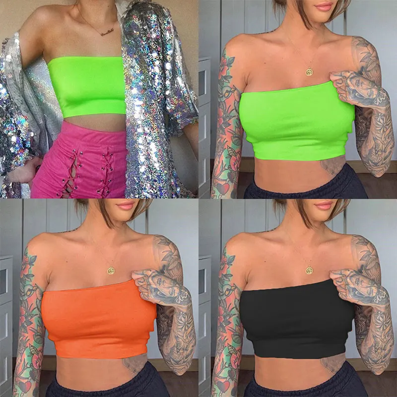 Sexy Lady Sleeveless Off Shoulder Cami Fashion Wireless Brassiere Summer Streetwear Slim Strapless Tank Top Invisible Lingerie