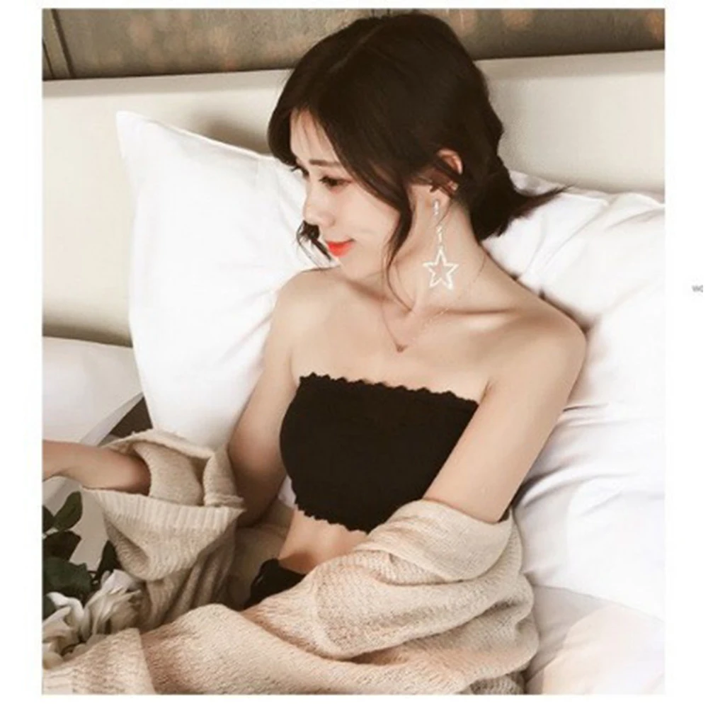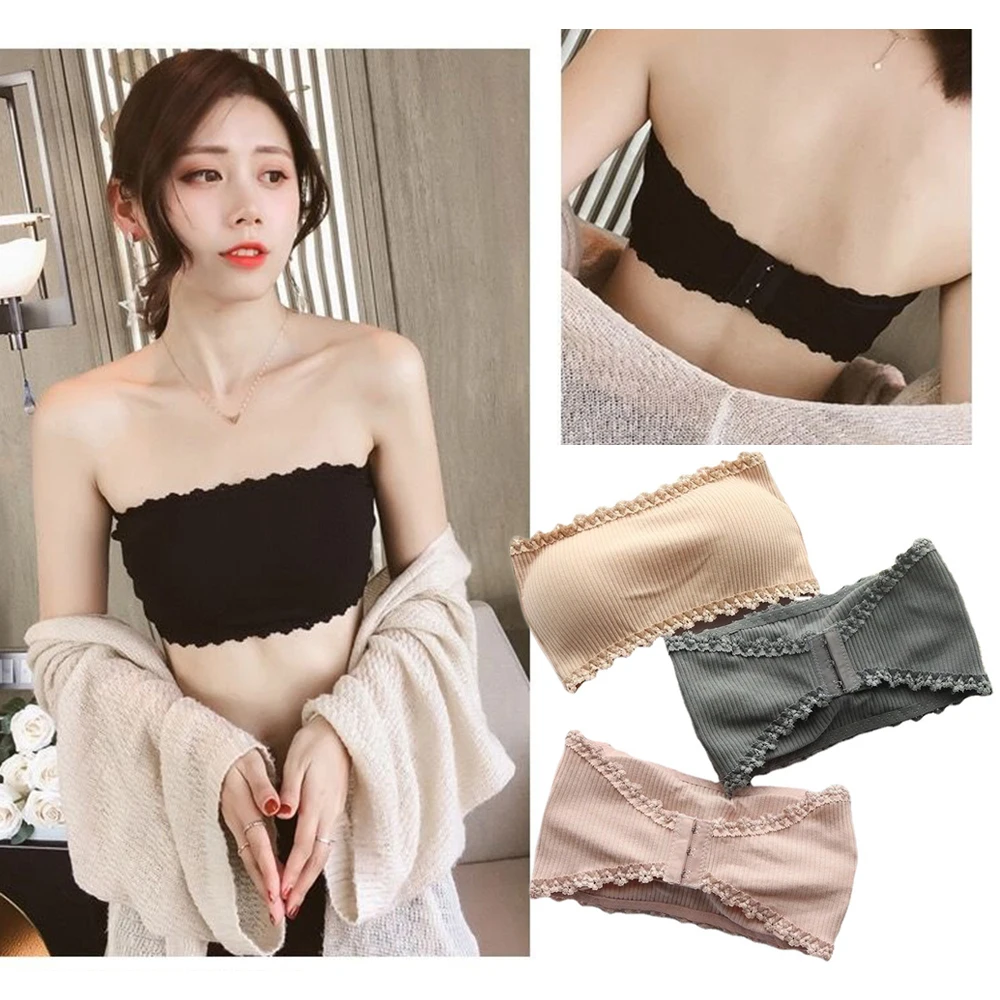 Fashion Vertical Striped Strapless Bra Women Lace Trim Invisible Gathering Bustier Sexy Beauty Back Female Lingerie