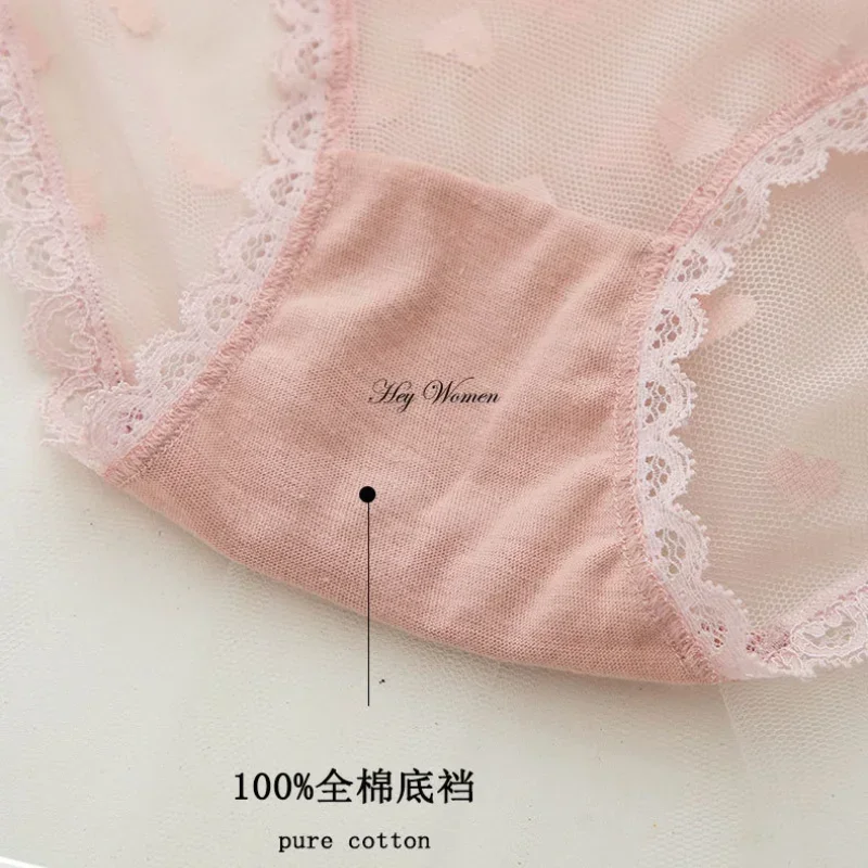 Name | Sexy Lace Panties Bow Heart Mesh Transparent Lingerie Women Mid Waist Underwear Female Cotton Crotch Japanese Underpants |
